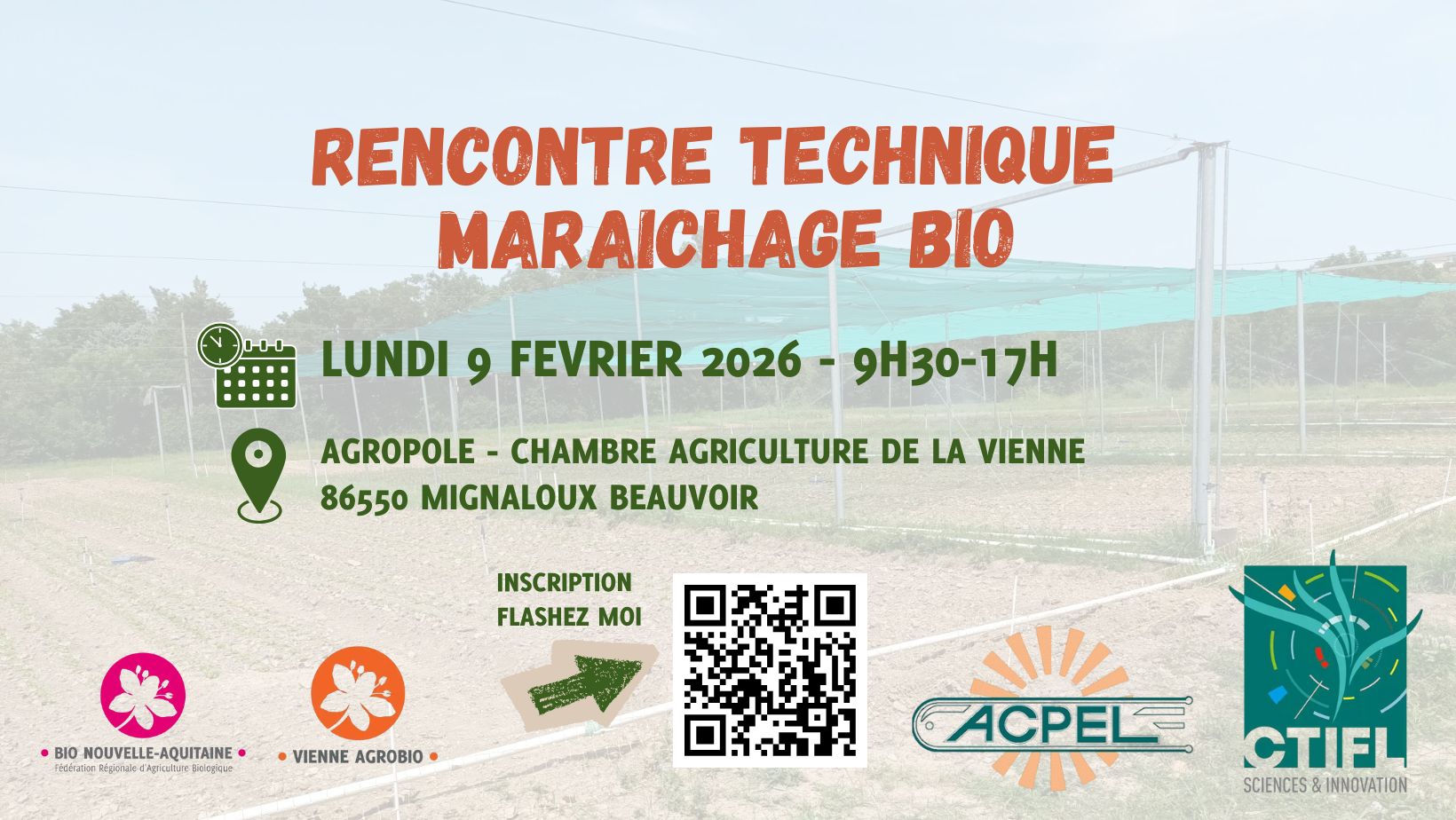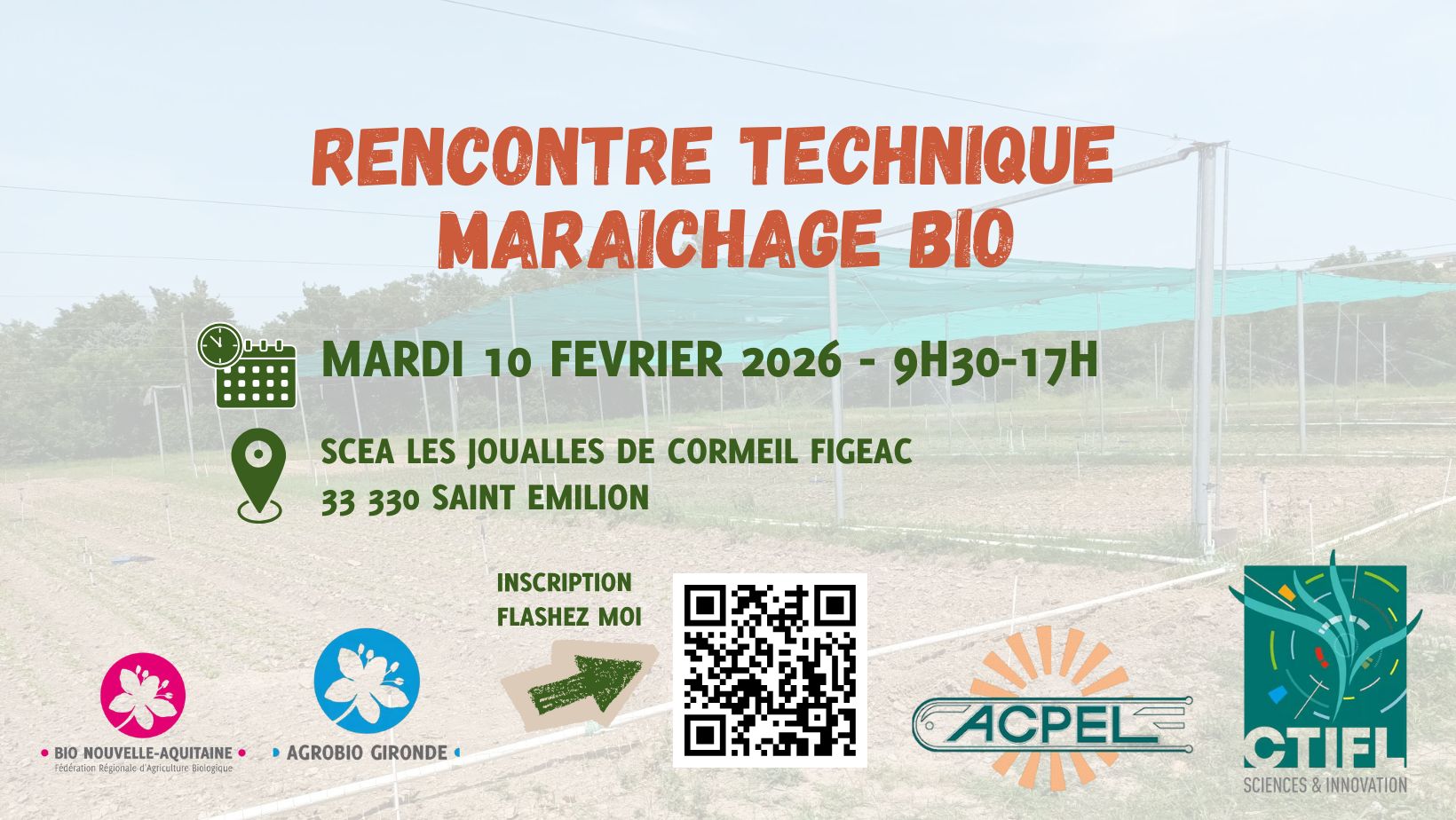📆 Nous vous donnons rendez vous le lundi 9 février à Mignaloux Beauvoir (86) ou le mardi 10 février à Saint Emilion (33) pour une rencontre technique maraichage bio !